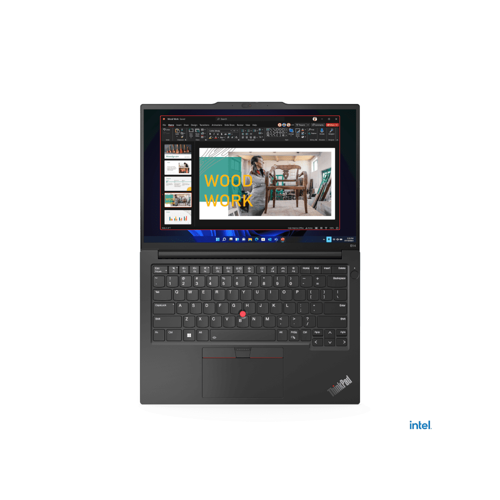 Warianty kolorystyczne nadają laptopowi ThinkPad E14 Gen 5 (14, Intel) nowoczesny i profesjonalny wygląd. Nowa konstrukcja klawiatury zapewnia lepsze wyczucie i płynniejsze wprowadzanie danych bez błędów, a TrackPad o wymiarach 115 mm x 56 mm usprawnia nawigację na ekranie. ThinkPad E14 Gen 5 jest także wyposażony w krystalicznie czysty 14-calowy wyświetlacz o rozdzielczości do WUXGA+ ze 100% pokryciem gamy kolorów sRGB, opcjonalnym ekranem dotykowym i sprzętową certyfikacją Low Blue Light zapewniającą wyjątkowe wrażenia wizualne.